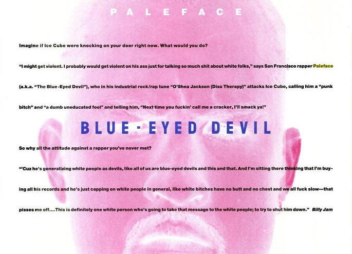 After being reminded of this misguided attempt at Saltine Rap pride from 1993, it’s only right to give Paleface his second 15 seconds in the spotlight. It’s safe to assume that this guy was ignored by Ice Cube and therefore nobody outside of the Vibe magazine office ever heard this ‘industrial rock/rap’ track aimed at O’Shea. Shout-outs to Caesar for finding the scan and saving me having to dig through the torn-up magazine crates.