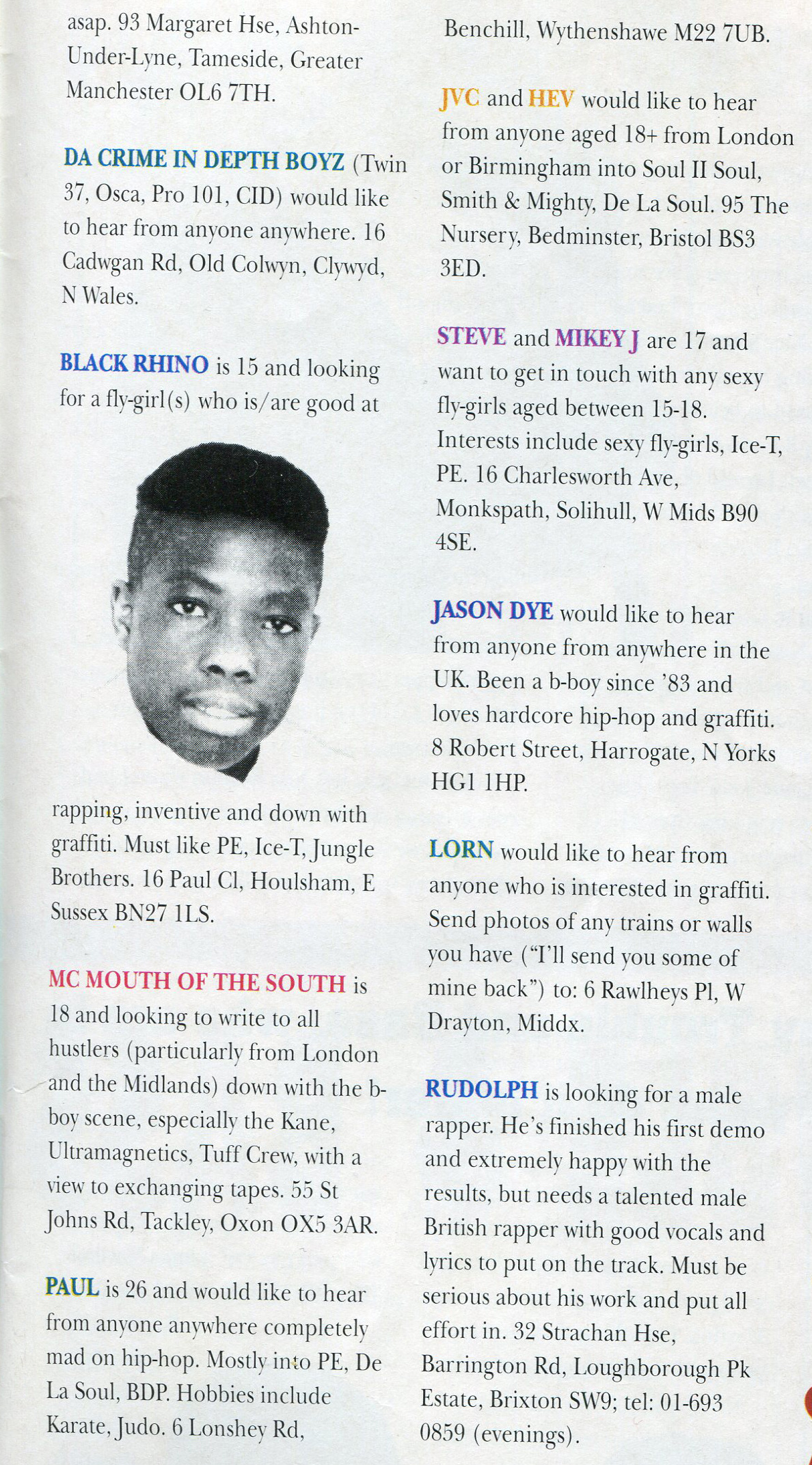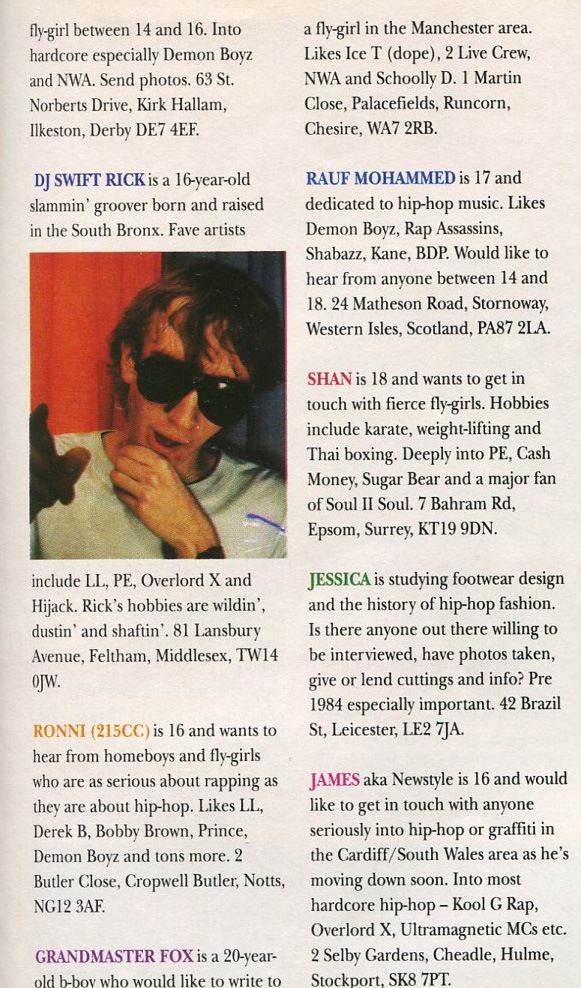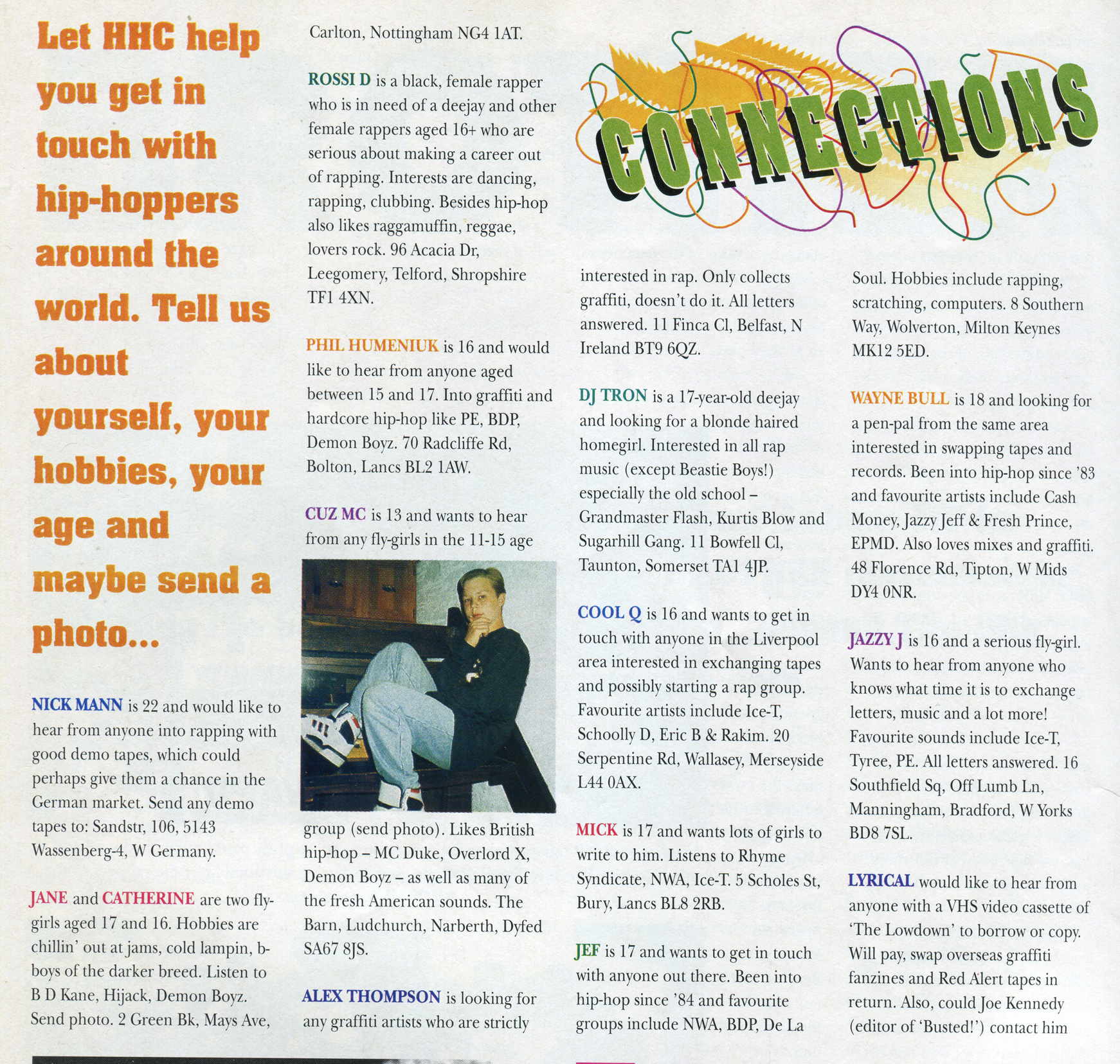 Are you an ill homeboy looking to find a funky fresh fly girl to chill with after school? Then step on up the Hip Hop Connection‘s cleverly titled ‘Connections’ page and find a pen pal today! Sure, these ads were placed on the late 80’s but there’s a decent chance that some of these fellas are still living with mum if you care to try sending them some snail mail, ladies!