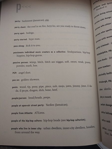 The year? 2002. The Internets was still but a niche amusement for those with the patience to wait five minutes for their dial-up modem to connect through their phone line to spend another fifteen minutes to load a nude. But then the publishing world was blessed with a shining beacon of light to guide us through the darkness of not having Wikipedia or Urban Slang to refer to. The book? Hip Hoptionary.