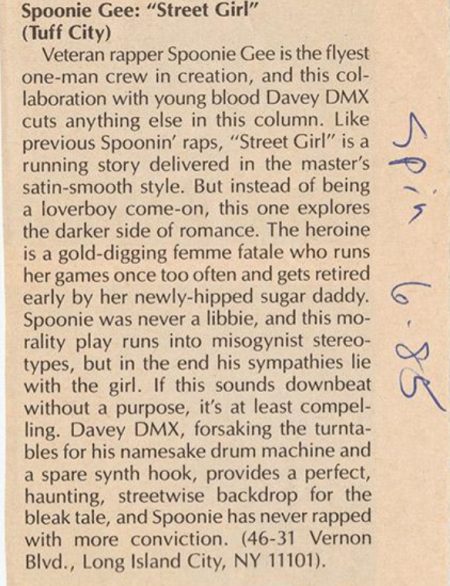 Spoonie is the class of ’79 rapper who best adapted to all Rap’s constant evolutions of production up to 1987, imho. Dropped killer/good singles for 9 years straight throughout all those changes.